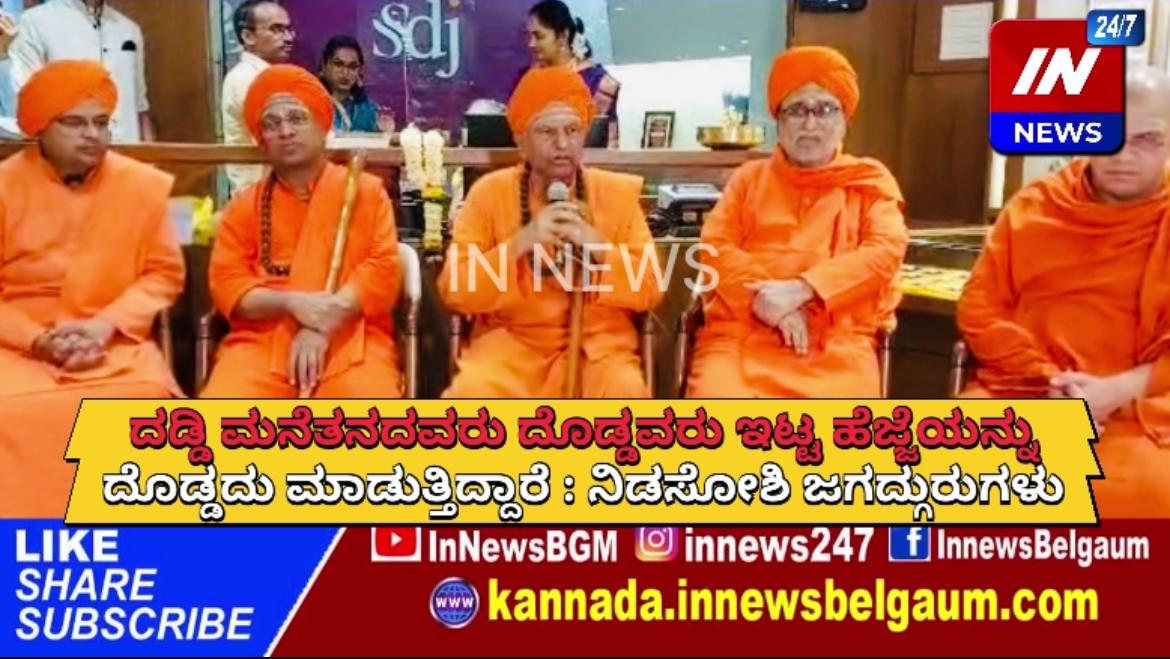 ಮನುಷ್ಯ ತನ್ನ ಜೀವನದಲ್ಲಿ ಅನೇಕ ಕಾಯಕಗಳನ್ನು ಮಾಡುತ್ತಾನೆ ಅದೇ ರೀತಿ ದಡ್ಡಿ ಬಂಧುಗಳು ಸಂಪೂರ್ಣ ಕಾಯಕದಲ್ಲಿ ಅವರನ್ನು ತೊಡಗಸಿಕೊಂಡಿದ್ದಾರೆ ಎಂದು ನಿಡಸೋಶಿ ಜಗದ್ಗುರು ಶ್ರೀ ಪಂಚಮ ಶಿವಲಿಂಗೇಶ್ವರ ಮಹಾಸ್ವಾಮಿಗಳು ಉದ್ಘಾಟನೆ ನೆರವೇರಿಸಿ ಹೇಳಿದರು. ಗೋವಾವೇಶ ಮಹಾತ್ಮಾ ಪುಲೆ ರೋಡನಲ್ಲಿರುವ ಲಕ್ಷ್ಮಿ ನಾರಾಯಣ ಕಟ್ಟಡದಲ್ಲಿ ದಡ್ಡಿ ಮನೆತನದವರು ನಿರ್ಮಿಸಿರುವ ಶುಭಸಂಗಮ ಜ್ಯುವೆಲರಿ ಮಳಿಗೆ ಉದ್ಘಾಟನೆ ಮಾಡಿ ಮಾತನಾಡಿದರು.