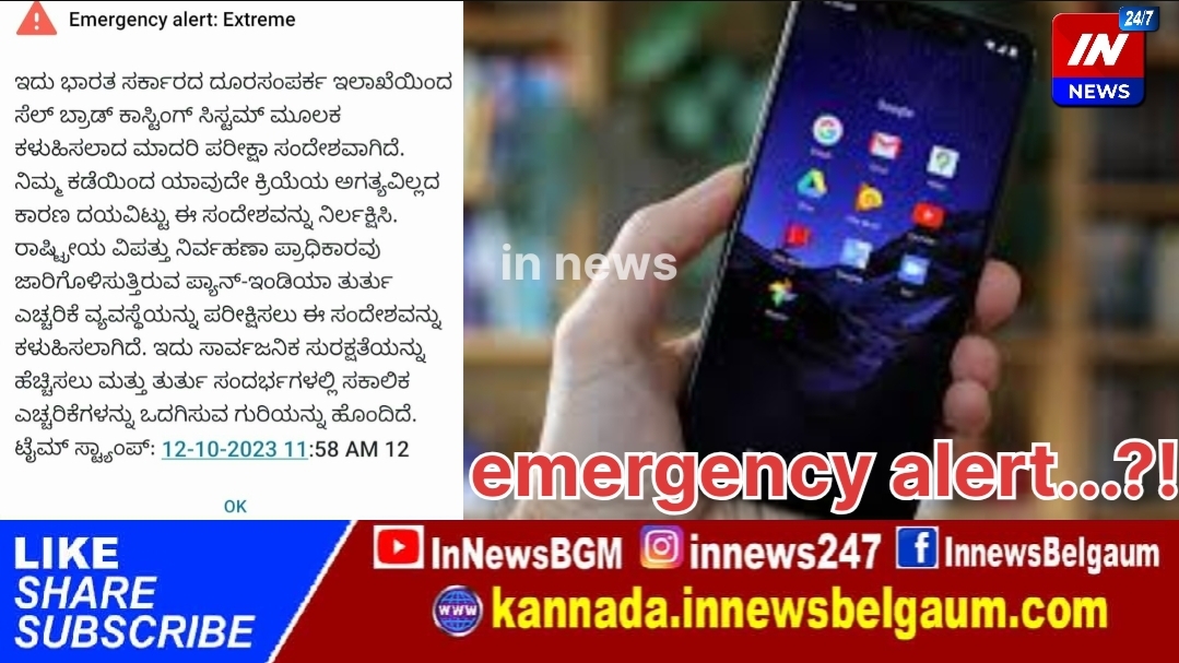 ಈ ವೇಳೆ ಧ್ವನಿ ಮತ್ತು ಕಂಪನದೊಂದಿಗೆ ಎಲ್ಲರ ಮೊಬೈಲ್ ಫೋನ್ ಗಳಿಗೆ ಎಚ್ಚರಿಕೆ ಸಂದೇಶ ಬಂದಿದೆ. ಈ ಎಚ್ಚರಿಕೆಗಳು ವಿಪತ್ತು ಸಂಭವಿಸಿದಾಗ ಜನರನ್ನು ಎಚ್ಚರಿಸುವ ಯೋಜಿತ ಪರೀಕ್ಷಾ ಪ್ರಕ್ರಿಯೆಯ ಭಾಗವಾಗಿದೆ. ಯಾರೂ ಈ ಎಚ್ಚರಿಕೆ ಬಗ್ಗೆ ಯಾರೂ ಆತಂಕ ಪಡುವ ಅಗತ್ಯವಿಲ್ಲ ಎಂದು ಡಿಒಟಿ ಸ್ಪಷ್ಟಪಡಿಸಿದೆ.ರಿಕೆ ಬಗ್ಗೆ ಯಾರೂ ಆತಂಕ ಪಡುವ ಅಗತ್ಯವಿಲ್ಲ ಎಂದು ಡಿಒಟಿ ಸ್ಪಷ್ಟಪಡಿಸಿದೆ.