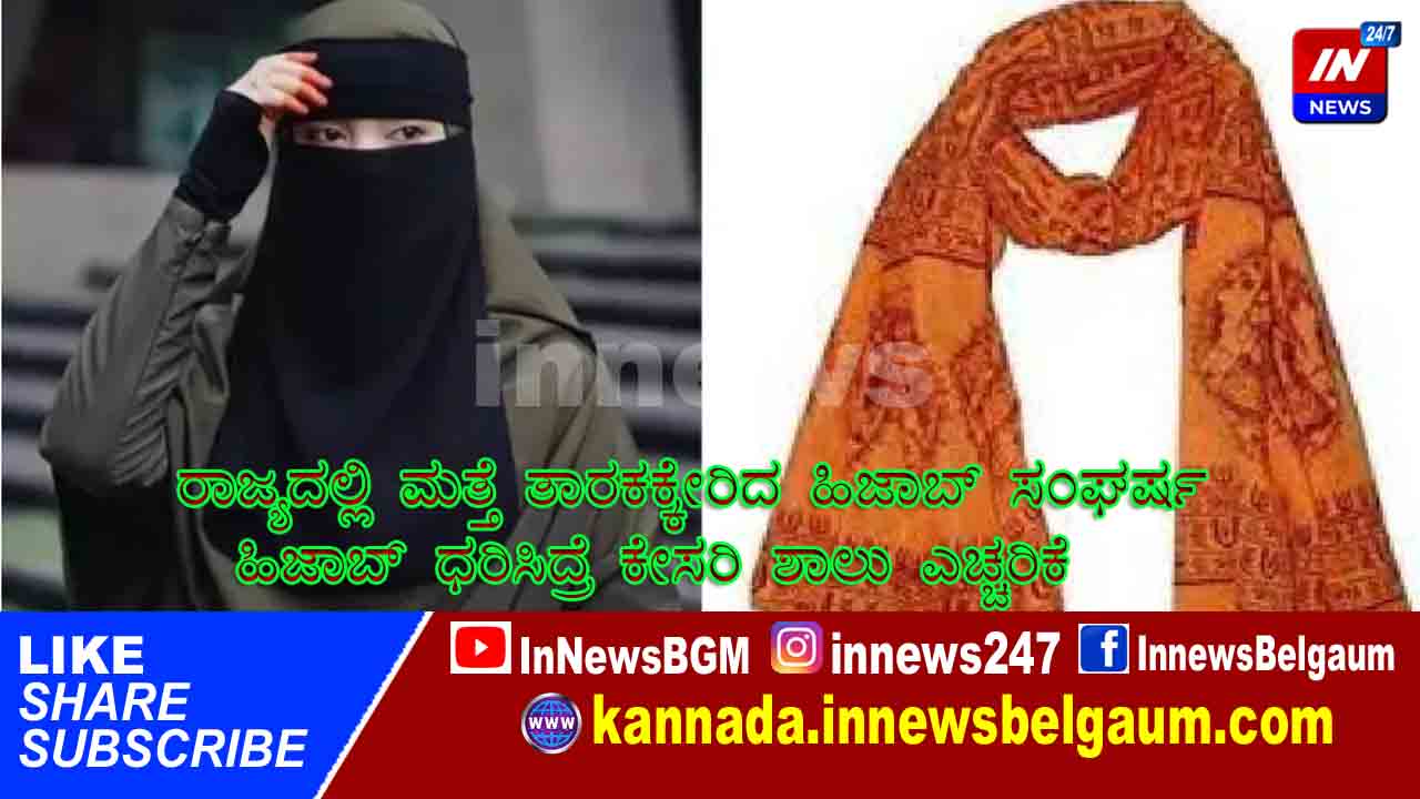 ರಾಜ್ಯದಲ್ಲಿ ಮತ್ತೆ ತಾರಕಕ್ಕೇರಿದ ಹಿಜಾಬ್‌ ಸಂಘರ್ಷ: ಹಿಜಾಬ್‌ ಧರಿಸಿದ್ರೆ ಕೇಸರಿ ಶಾಲು ಎಚ್ಚರಿಕೆ
