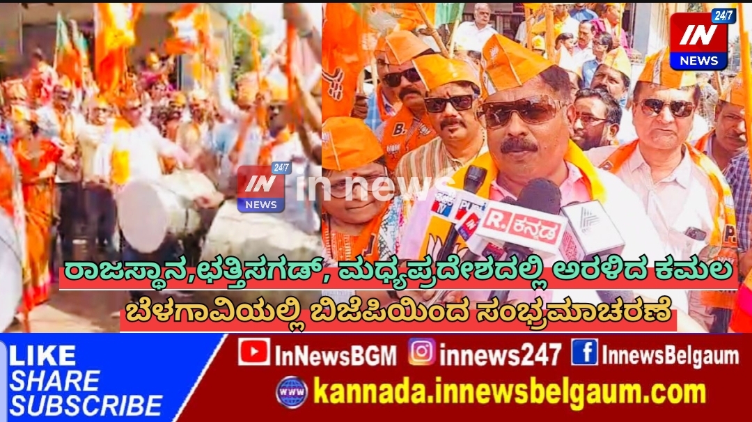 ರಾಜಸ್ಥಾನ , ಛತ್ತಿಸಗಡ್, ಮಧ್ಯಪ್ರದೇಶದಲ್ಲಿ ಬಿಜೆಪಿ ಪಕ್ಷ ಅಧಿಕಾರ ಗದ್ದುಗೆ ಏರಿದ ಹಿನ್ನೆಲೆಯಲ್ಲಿ ಬೆಳಗಾವಿ ದಕ್ಷಿಣ ಬಿಜೆಪಿ ಶಾಸಕ ಅಭಯ ಪಾಟೀಲ್ ನೇತೃತ್ವದಲ್ಲಿ ಶಹಾಪುರದ ಶಿವಾಜಿ ಉದ್ಯಾನ ಬಳಿ ಸಂಭ್ರಮಾಚರಣೆ ಮಾಡಲಾಯಿತು