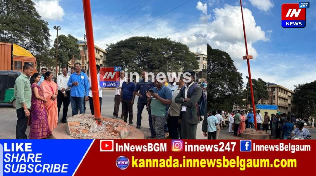 ಜೀಜಾಮಾತಾ ವೃತ್ತ ಶಿವಾಜಿ ಕಾಂಪೌಂಡ್ನಲ್ಲಿರುವ ದ್ವಜಸ್ಥಂಭಕ್ಕೆ ಅಪರಿಚಿತ ವಾಹನದಿಂದ ಡಿಕ್ಕಿ ಹೊಡೆದು ಜಖಂಗೊಂಡಿದೆ. ವಾರ್ಡ್ ನಂ.9ರ ಕಾರ್ಪೊರೇಟರ್ ಪೂಜಾ ಪಾಟೀಲ್ ರವರು ಹಾಗು ಸಮಾಜ ಸೇವಕ ಇಂದ್ರಜೀತ ಪಾಟೀಲರವರು ದ್ವಜಸ್ಥಂಭ ದುರಸ್ತಿಗೊಳಿಸುವಂತೆ ಮೇಯರ್ ಅವರಿಗೆ ಮನವಿ ಮಾಡಿದರು. ಆ ಹಿನ್ನೆಲೆಯಲ್ಲಿ ಇಂದು ಮೇಯರ್ ಶೋಭಾ ಸೋಮನಾಚೆ ಸರ್ವೆ ನಡೆಸಿ ದುರಸ್ತಿಗೊಳಿಸುವಂತೆ ಅಧಿಕಾರಿಗಳಿಗೆ ಆದೇಶಿಸಿದರು.