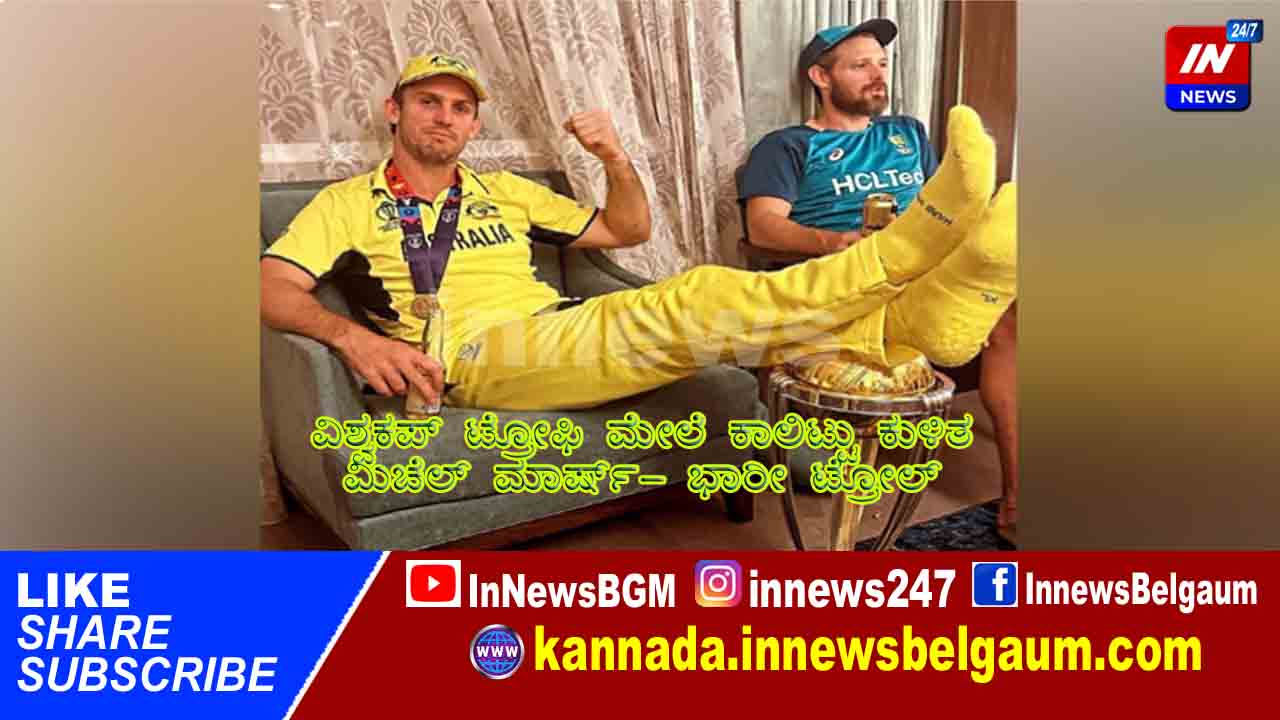 ಹೌದು. ಮಿಚೆಲ್ ಟ್ರೋಫಿ (World Cup Trophy) ಮೇಲೆ ಕಾಲಿಟ್ಟು ಕುಳಿತ ಫೋಟೋವೊಂದು ಸಾಮಾಜಿಕ ಜಾಲತಾಣಗಳಲ್ಲಿ ಸಖತ್ ವೈರಲ್ ಆಗುತ್ತಿದೆ. ಟ್ರೋಫಿಗೆ ಅಗೌರವ ಸೂಚಿಸಿರುವ ಮಿಚೆಲ್ ನಡೆಯನ್ನು ಜನ ಖಂಡಿಸಿದ್ದು, ಹಿಗ್ಗಾಮುಗ್ಗ ತರಾಟೆಗೆ ತೆಗೆದುಕೊಳ್ಳುತ್ತಿದ್ದಾರೆ.
