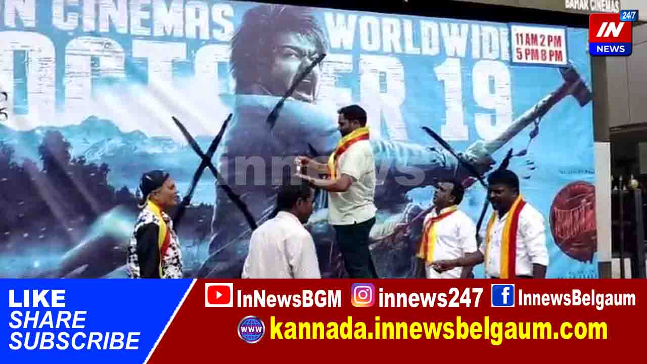 ಚಿತ್ರಮಂದಿರ ಹಾಗೂ ಮಾಲೀಕನ ವಿರುದ್ಧ ಅಕ್ರೋಶ ವ್ಯಕ್ತಪಡಿಸಿ ಚಿತ್ರಮಂದಿರದ ಮಾಲೀಕರ ವಿರುದ್ಧ ದಿಕ್ಕಾರ ಕೂಗಿ ಆಕ್ರೋಶ ಹೊರಹಾಕಿದರು. ವಿಜಯ್ ಭಾವಚಿತ್ರ ಇರುವ ಫ್ಲೆಕ್ಸ್ಗೆ ಮಸಿ ಬಳಿದು ಚಿತ್ರವನ್ನು ನಿಲ್ಲಿಸುವಂತೆ ಅಗ್ರಾಹಿಸಿದರು.