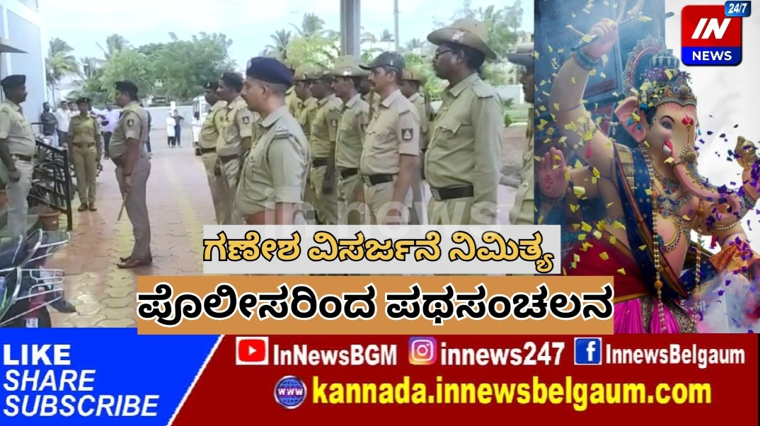 ಗಣೇಶ ವಿಸರ್ಜನೆ ಹಿನ್ನೆಲೆಯಲ್ಲಿ ಕುಡಚಿ ಪಟ್ಟಣದ ಪ್ರಮುಖ ಬೀದಿಗಳಲ್ಲಿ ಕರ್ನಾಟಕ ಪೊಲೀಸ್ ಹಾಗೂ ಮೀಸಲು ಪಡೆಯಿಂದ ಪಥಸಂಚಲನ ನಡೆಸಿದರು.
