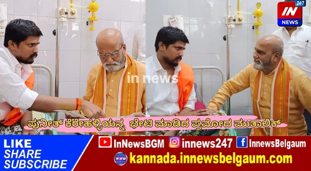 ಪುನೀತ್ ಕೆರೇಹಳ್ಳಿ ಅವರನ್ನು ವಿಕ್ಟೊರಿಯ ಆಸ್ಪತ್ರೆಯಲ್ಲಿ ಭೇಟಿ ಮಾಡಿದ ಶ್ರೀರಾಮ ಸೇನಾ ಮುಖ್ಯಸ್ಥ ಪ್ರಮೋದ್ ಮುತಾಲಿಕ್