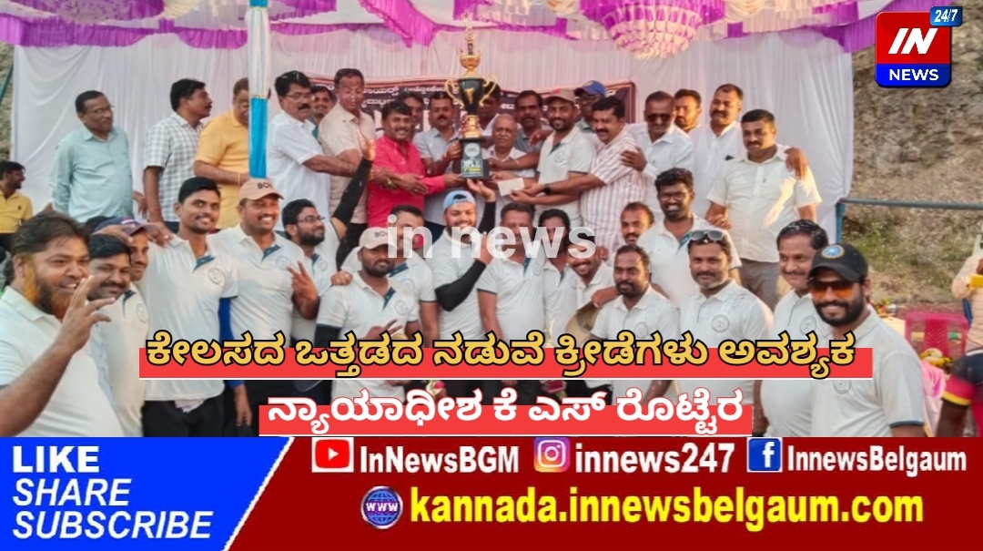 ಕೇಲಸದ ಒತ್ತಡಗಳ ನಡುವೆ ಕ್ರೀಡೆಗಳು ಮನೊಲ್ಲಾಸ ನೀಡುತ್ತವೆ ಎಂದು ಹುಕ್ಕೇರಿ ಹಿರಿಯ ದಿವಾಣಿ ನ್ಯಾಯಾಧೀಶ ಕೆ ಎಸ್ ರೋಟ್ಟೆರ ಹೇಳಿದರು .