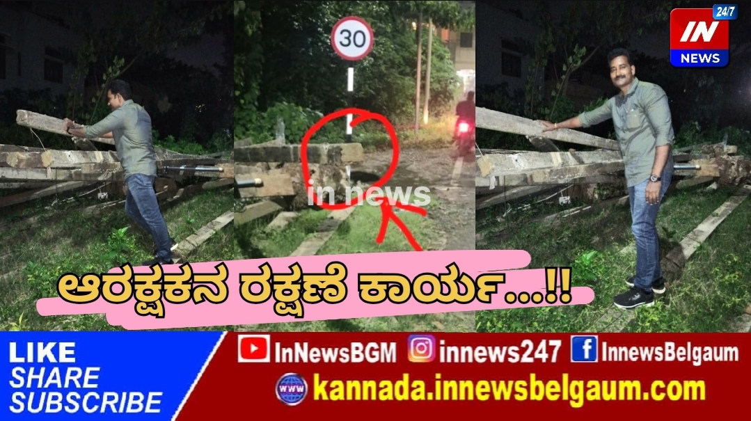 ಅಪಾಯದ ಅಂಚಿನಲ್ಲಿದ್ದ ಸಿಮೆಂಟ್ ಪೊಲ ಗಳನ್ನೂ ಸರಿಪಡಿಸಿದ ಪೊಲೀಸ್ ಕಾನಸ್ಟೆಬಲ್